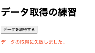 ここまでで、基本的なfetchの使い方を学びましたが、実際のWebアプリケーションでは、データ取得中にエラーが発生することもあります。
