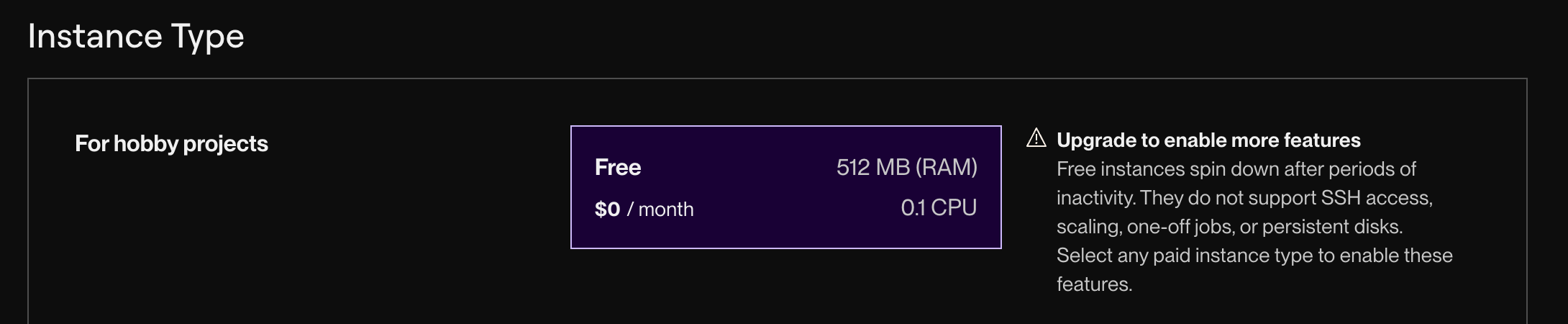 - Instance Type: Free