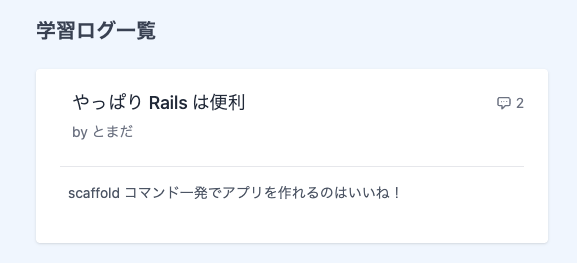 - 投稿一覧ページにコメント数を表示する実装方法を習得する