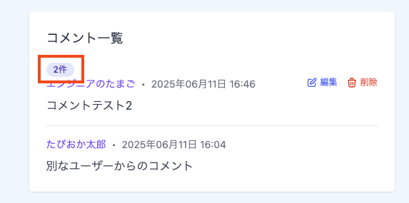 - 投稿詳細ページのコメント一覧セクションにコメント数バッジが表示されているか