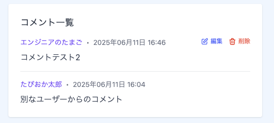 実装が完了したら、実際にコメント編集機能が動作するか確認しましょう。