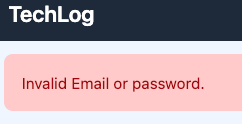 まずは、ログインフォームに何も入力せずに「ログイン」ボタンを押してください。メールアドレス、またはパスワードが無効である旨の(alertレベルの)フラッシュメッセージが表示されます。