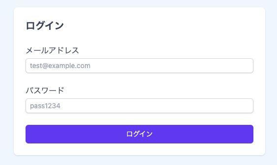 前章で学んだTailwind CSSのクラスを再利用しているため、ユーザー登録ページと統一感のあるデザインになっています。