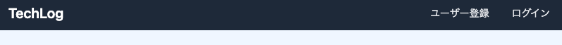 <nav class="bg-gray-800 border-gray-200 px-2 sm:px-4 py-2.5"> <div class="container flex flex-wrap justify-between items-center mx-auto"> <%= link_to "TechLog", "/", class: "self-center text-white text-xl font-semibold whitespace-nowrap" %> <div class="w-full md:block md:w-auto"> <ul class="flex flex-col mt-4 md:flex-row md:space-x-8 md:mt-0 md:text-sm md:font-medium"> <% if current_user %> <li> <%= button_to "ログアウト", destroy_user_session_path, class: "block py-2 pr-4 pl-3 text-gray-200 hover:text-white border-b border-gray-700 hover:bg-gray-700 md:hover:bg-transparent md:border-0 md:hover:text-blue-white md:p-0", method: :delete %> </li> <% else %> <li> <%= link_to "ユーザー登録", new_user_registration_path, class: "block py-2 pr-4 pl-3 text-gray-200 hover:text-white border-b border-gray-700 hover:bg-gray-700 md:hover:bg-transparent md:border-0 md:hover:text-blue-white md:p-0" %> </li> <li> <%= link_to "ログイン", new_user_session_path, class: "block py-2 pr-4 pl-3 text-gray-200 hover:text-white border-b border-gray-700 hover:bg-gray-700 md:hover:bg-transparent md:border-0 md:hover:text-blue-white md:p-0" %> </li> <% end %> </ul> </div> </div></nav>current_user は、Deviseで用意されているヘルパーメソッドです。ログインしていれば current_user にUserオブジェクトが入りますので、if文の条件分岐で利用しています。