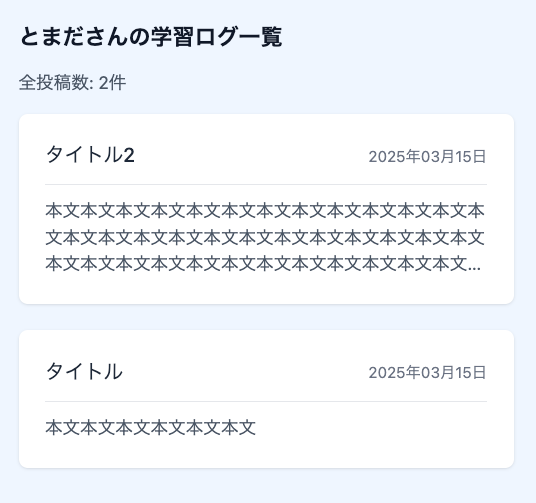 - 特定のユーザーが投稿した学習ログを一覧で確認できる