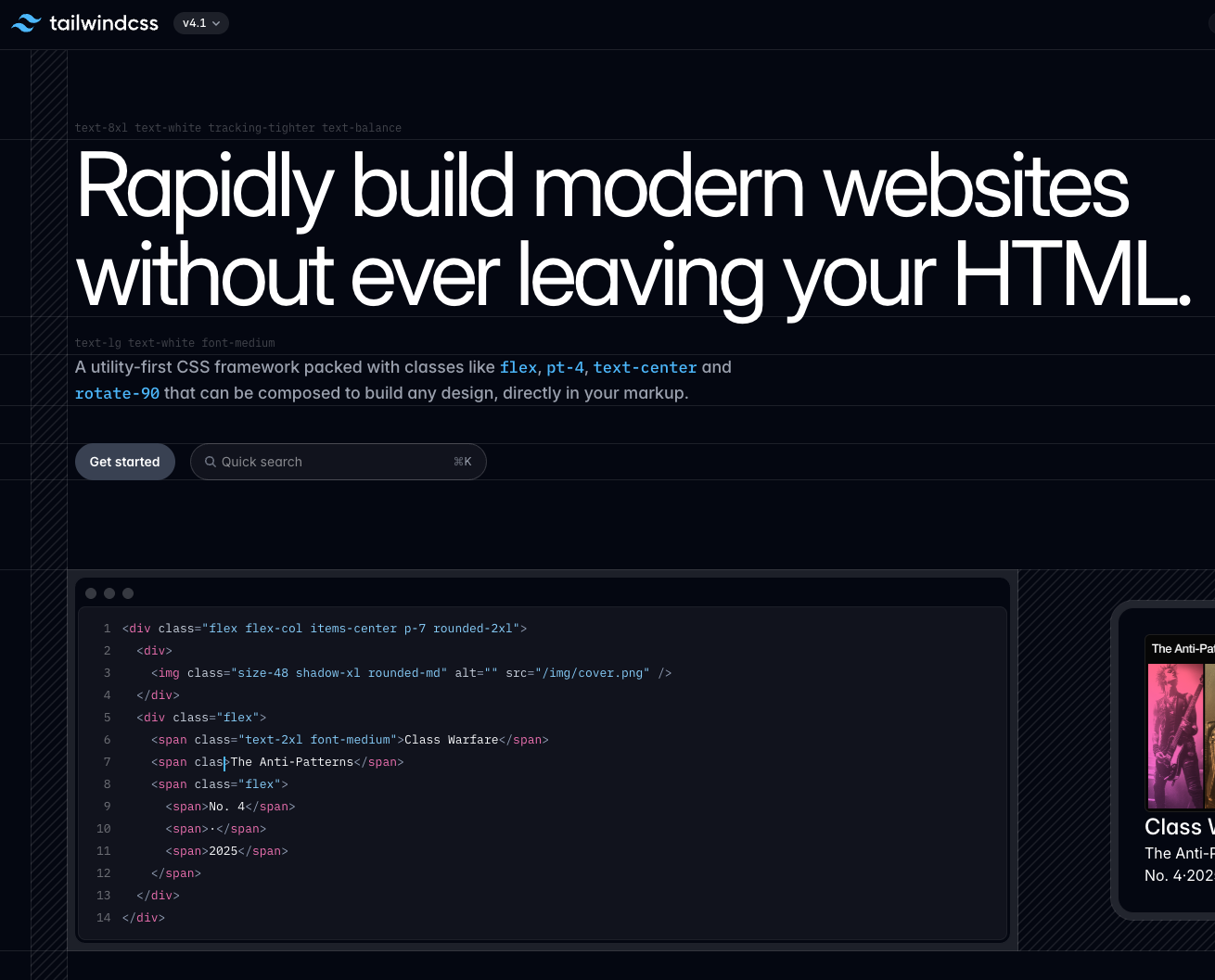それに対して、Tailwind CSSは、ユーティリティファーストCSSというアプローチを採用しています。