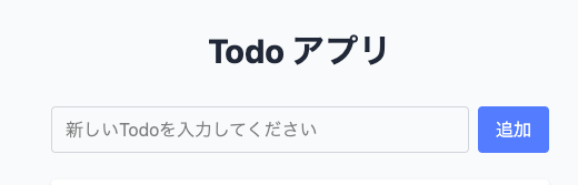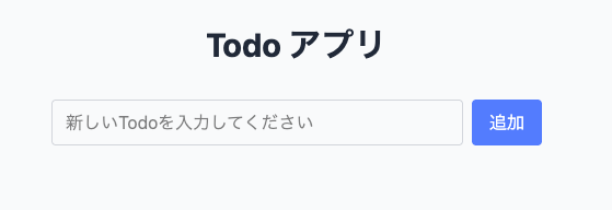 export default Appブラウザで確認すると、Todoアプリのタイトルの下に入力フォームが表示されているはずです。 入力欄に文字を入力してみて、正常に文字が表示されることを確認してください。
