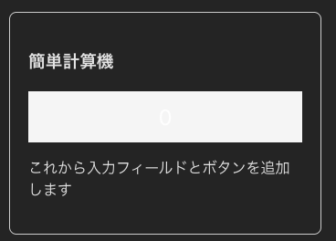 function App() { return ( <div style={{ padding: '20px' }}> <Calculator /> </div> );}export default App;ブラウザをリロードすると、計算機の骨格が表示されるはずです。