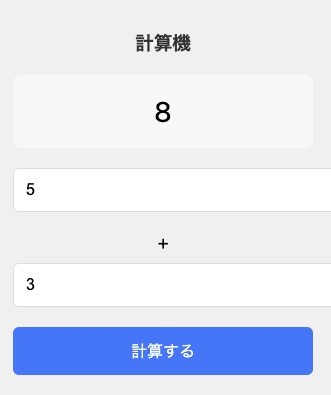 export default Calculator;ここでは、3つの数値状態を useState<number> で型安全に定義しています。 <number> を明示的に指定することで、これらの状態には必ず数値が格納されることが保証されます。